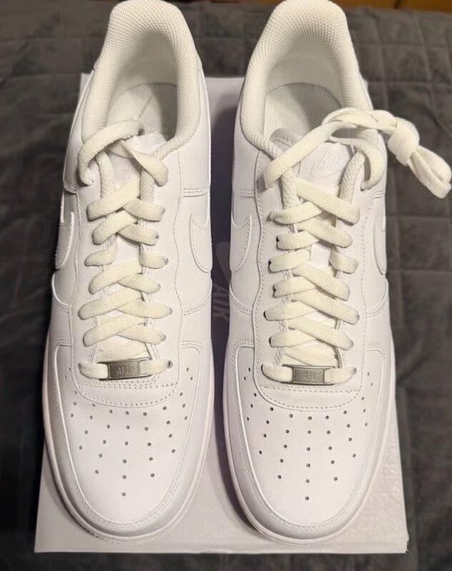 The Nike Air Force 1 Low “White on White” is one of the most popular and best-selling sneakers of all time. An essential for any collection, the all-white Air Force 1 Low is a versatile design that can be worn with virtually anything. The classic sneaker features a white leather upper with a mesh inner lining and solid white rubber outsole. A metallic silver “AF-1” lace dubrae completes the iconic look. The “triple white” Air Force 1 is a staple on the streets, and will continue to be in style from now until infinity.