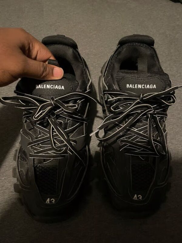 This iconic shoe by Balenciaga features a sleek all-black design, perfect for adding a touch of elegance to any outfit. With its comfortable fit and high-quality craftsmanship, this trainer is a must-have for any fashion-conscious individual. Elevate your style with the Balenciaga Triple Black Track Trainer.