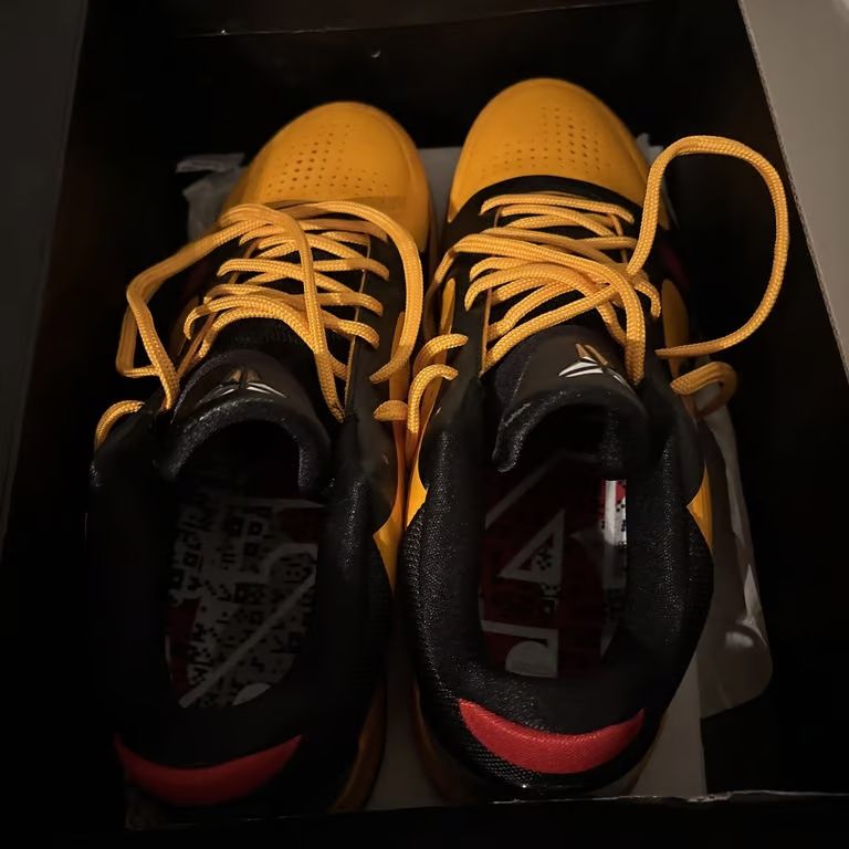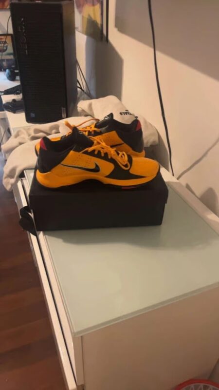 The Zoom Kobe 5 'Bruce Lee' is a tribute to the martial arts legend, featuring a striking color scheme inspired by Bruce Lee's iconic yellow and black jumpsuit from the movie "Game of Death". The upper showcases a vibrant yellow hue with black accents, reminiscent of Lee's famous attire. Additional details include red scratch marks on the forefoot, symbolizing the wounds Lee's character inflicted upon opponents in his films. This edition pays homage to Kobe Bryant's admiration for Bruce Lee's philosophy and martial arts prowess, making it a cherished collector's item among sneaker enthusiasts and fans of both basketball and martial arts culture.
